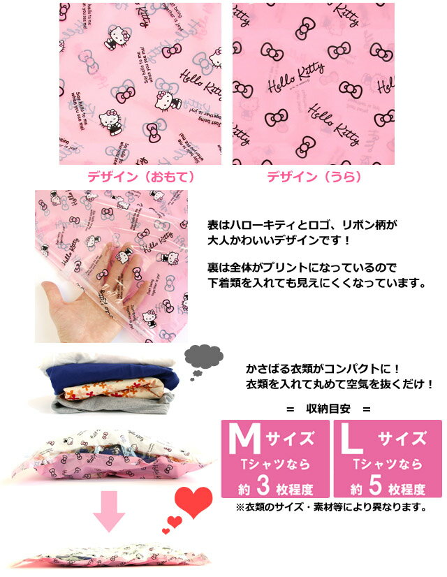 ハローキティ スタンダードロゴシリーズは→ こちら 品番 K-0016-ML サイズ(約) M/縦50cm×横36cmL/縦40cm×横42cm 収納目安 M/Tシャツなら約3枚程度L/Tシャツなら約5枚程度※衣類のサイズ・素材等により異なります。