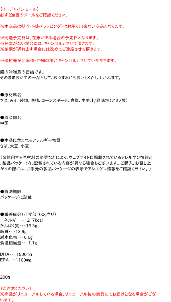 【キャッシュレス5%還元】天長 鯖缶味噌煮 200g【イージャパンモール】